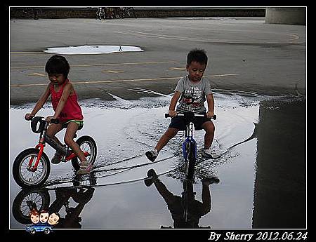 光是這灘水,二個小孩就玩到嚇嚇叫,也是挑戰不落地,玩了半個多小時還不肯走,就這麼來回穿梭竟然也是汗流夾背,原來這也是很耗體力的啊!