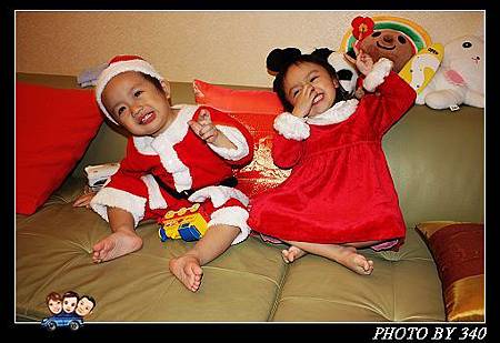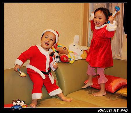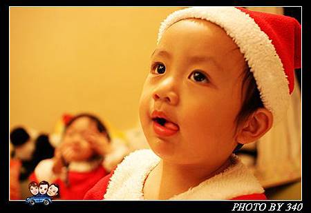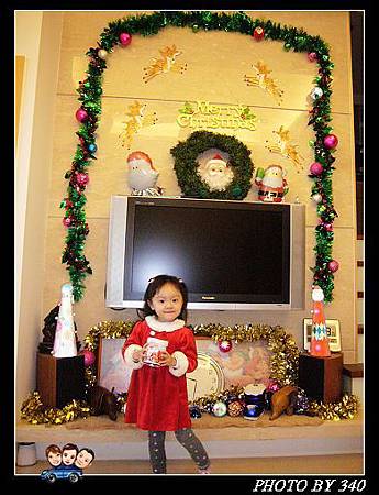 移師小姐姐家過節,重點縮小為一面牆,此時鍇一歲九個月,會吚吚啊啊唱,也會跟著跳,聖誕小公公的衣服明顯變小,再加上鍇壯碩的肚子,得深呼吸才扣得起來.....